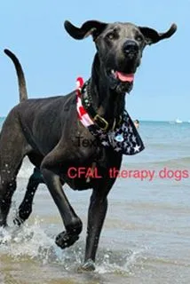 Neela comes to us from a Blue Great Dane Breeder in Pennsylvania. Neela was trained as a service dog and emotional therapy dog for her owner, Mari Richko, owner of CFAL. Neela works with mood disorders, anxiety, PTSD, and depression. She travels with Dr. Mari to residential treatment program facilities on her time off, our other office in Nevada, and walks around the community putting smiles on everyone's faces.